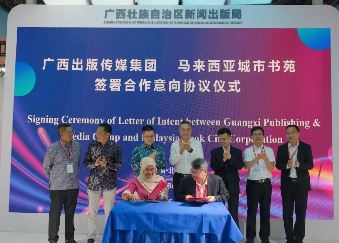 6月19日下午,广西出版传媒集团与马来西亚城市书苑在第三十届北京国际图书博览会上签署合作意向协议。
